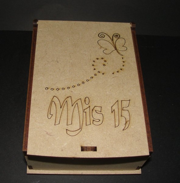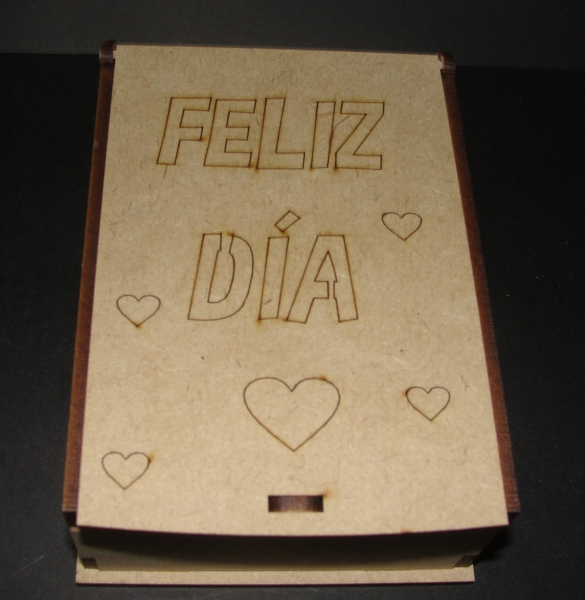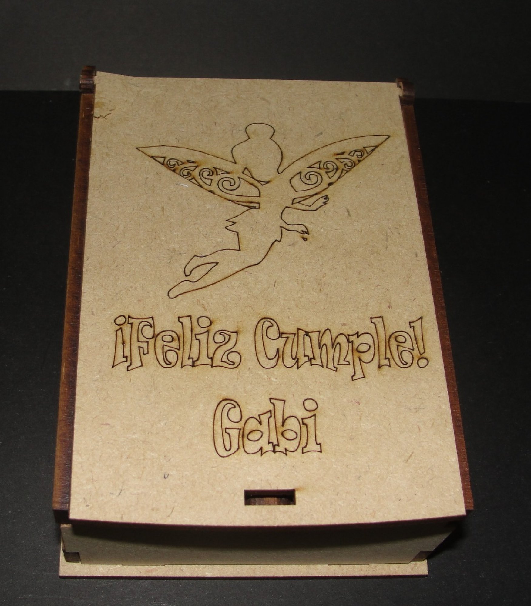 Caja en mdf de 3mm, ideal para presentes con dulcess o souvenir en tus fiestas de cumpleaños, casamientos. Cuenta con un frente de 9 cm, un fondo de 12,5 cm y una altura de 4,5 cm. Cortado y grabado a laser. Si deseas personalizado se realiza sin ningún costo.