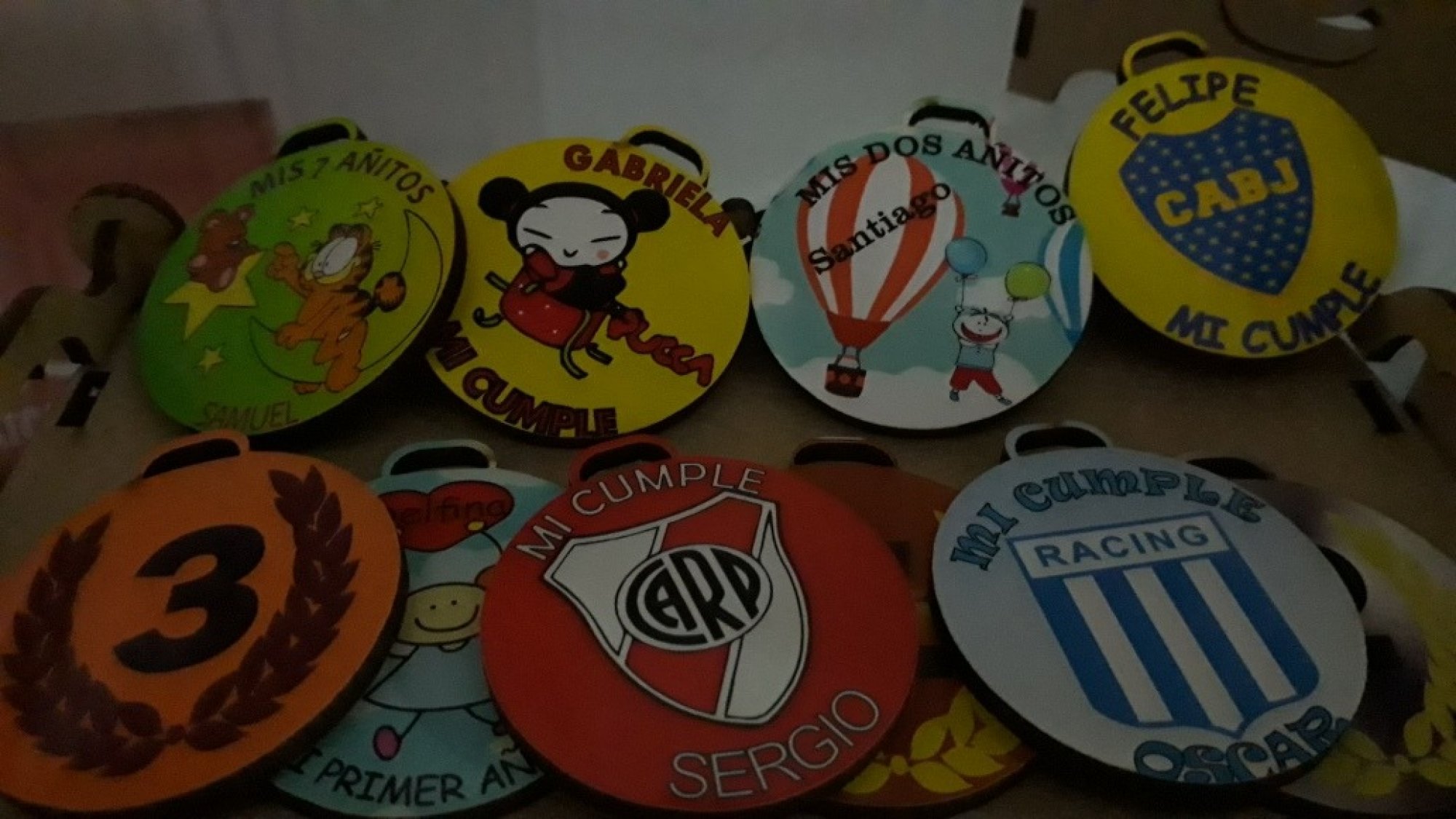 Medallas en mdf de 3 mm, ideales para trofeos y souvenirs de cumpleaños y eventos, con un diametro de 50 mm.