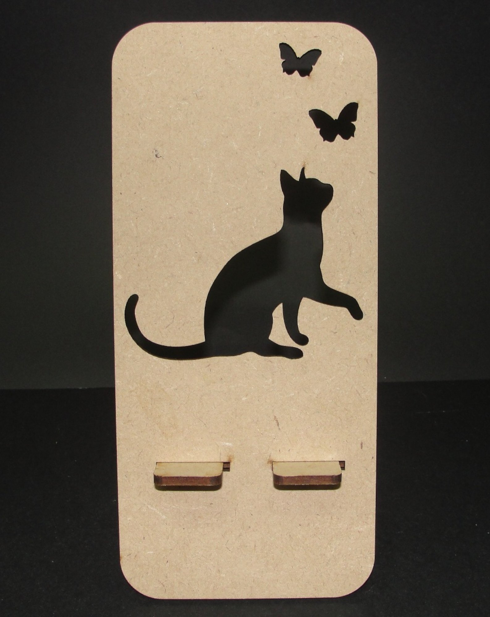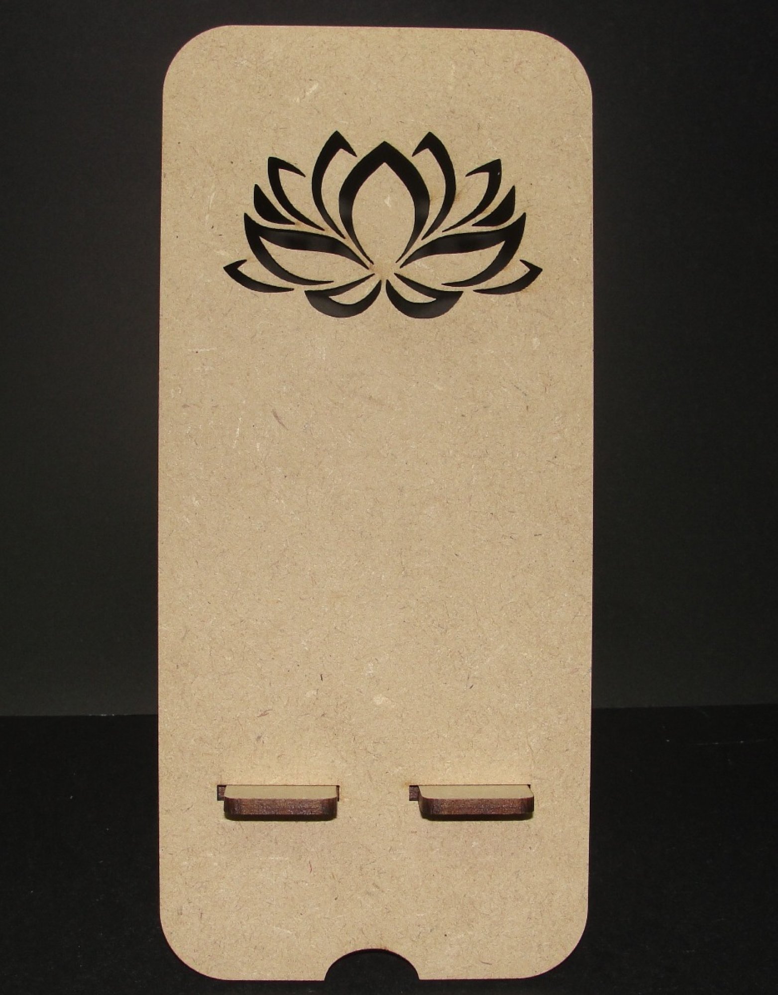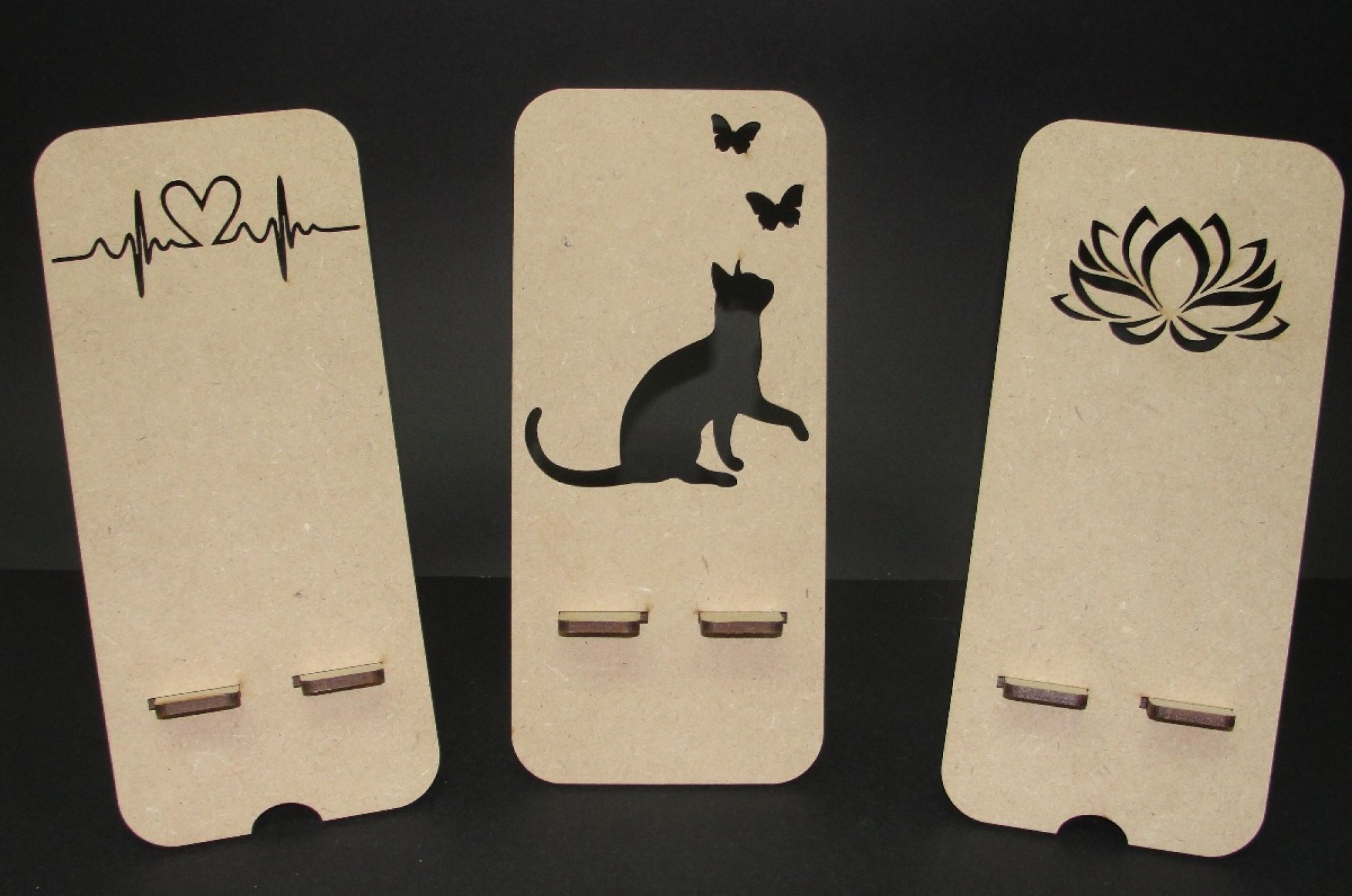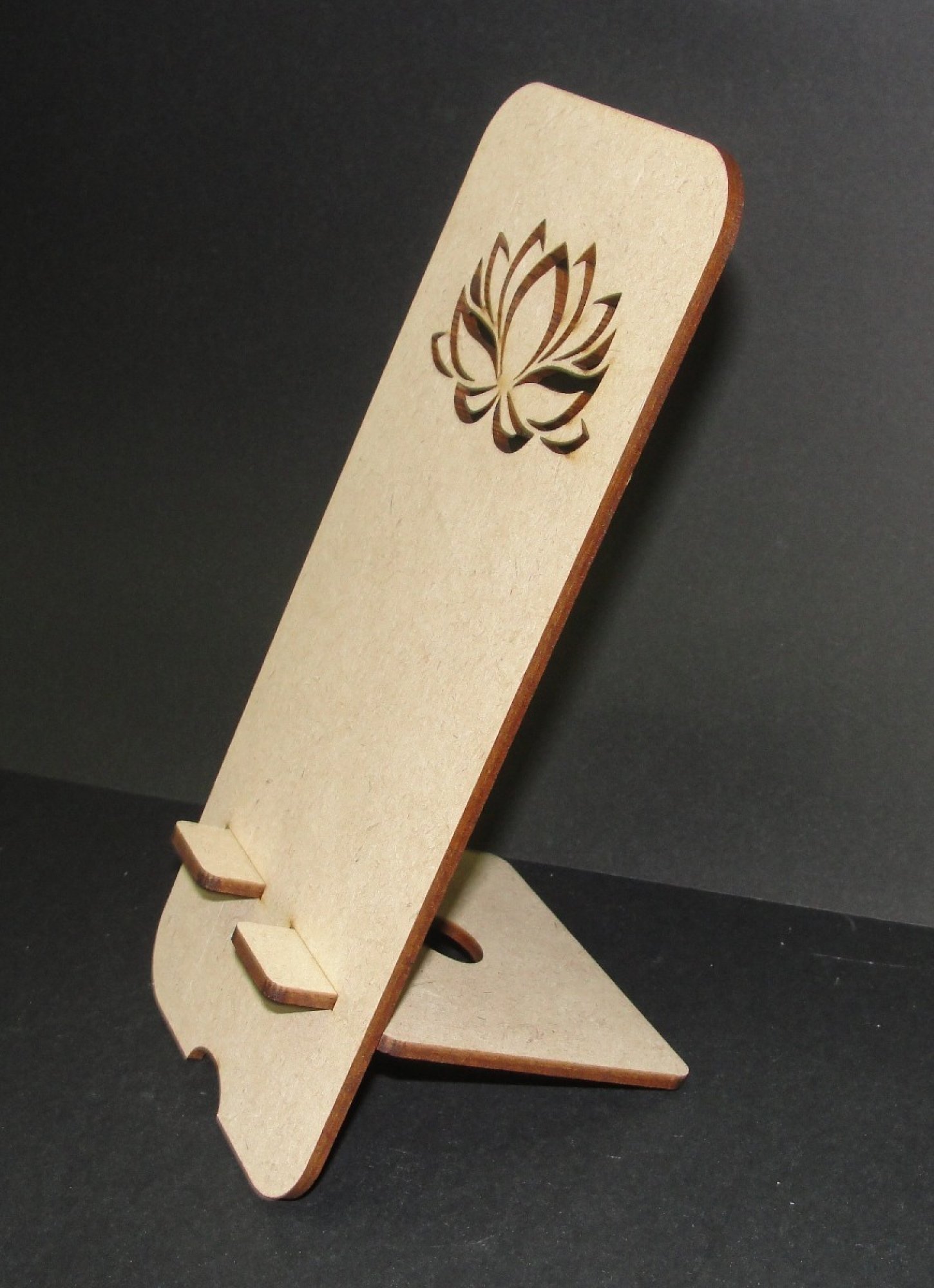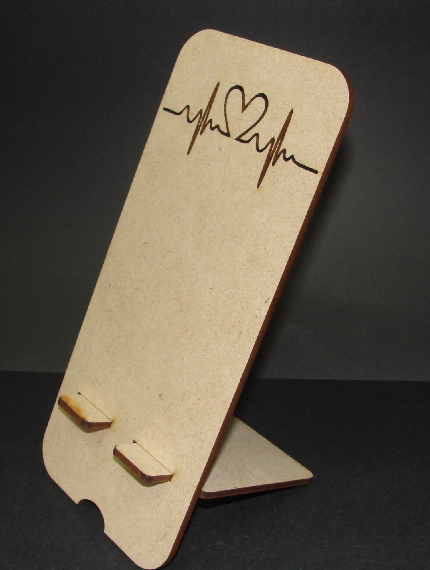 Atril o porta celular en mdf de 3mm, ideal para que puedas dejar tu celular a tu alcance sin molestar tus espacios y super practico para ver tus notificaciones o llamadas sin necesidad de tenerlo en tus manos, ademas que puedes cargar tu movil cuando tu celular esta en reposo en el atril porque cuenta con espacios destinados para pasar el cable. Se puede usar como souvenir en tus cumpleaños, con un frente de 9 cm y una altura de 20 cm, cortado y grabado a laser. Si deseas personalizado se realiza con un costo adicional de $5 pesos.
