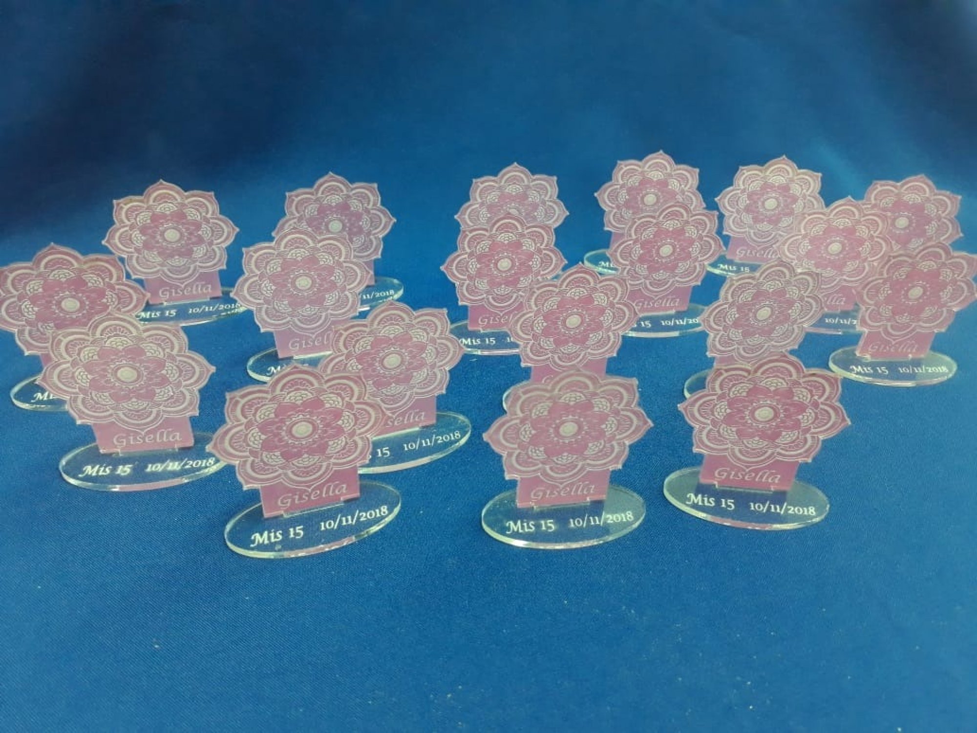 Souvenir en acrilico, ideal para cumpleaños 15, 18, 30, 50, con una medida de 10 cm aprox, cortado y grabado a laser, con opción de personalizado sin cargo. Consultarnos por color.